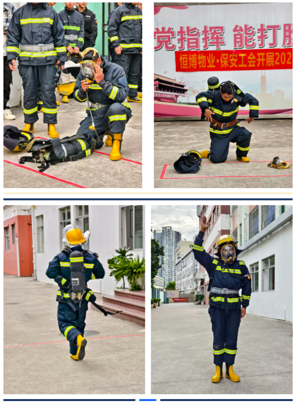 赛场之上,专业与专注交织,技能与速度碰撞。随着裁判员一声令下,消防技能比赛率先拉开帷幕。消防灭火服穿戴环节中,选手们争分夺秒,双手翻飞间便完成安全帽佩戴、消防服套穿、腰带系紧、防毒面具贴合等一系列动作,利落的身手赢得现场阵阵掌声;