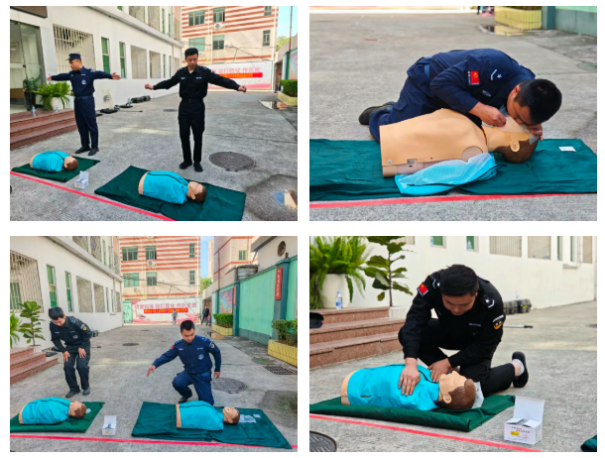 随后的单人心肺复苏环节,参赛选手们熟练完成现场呼救、胸外按压、人工呼吸等操作,按压深度、频率精准规范,人工呼吸衔接流畅,充分展现恒博安保团队"既能处置险情,又能救护生命"的全面应急能力。